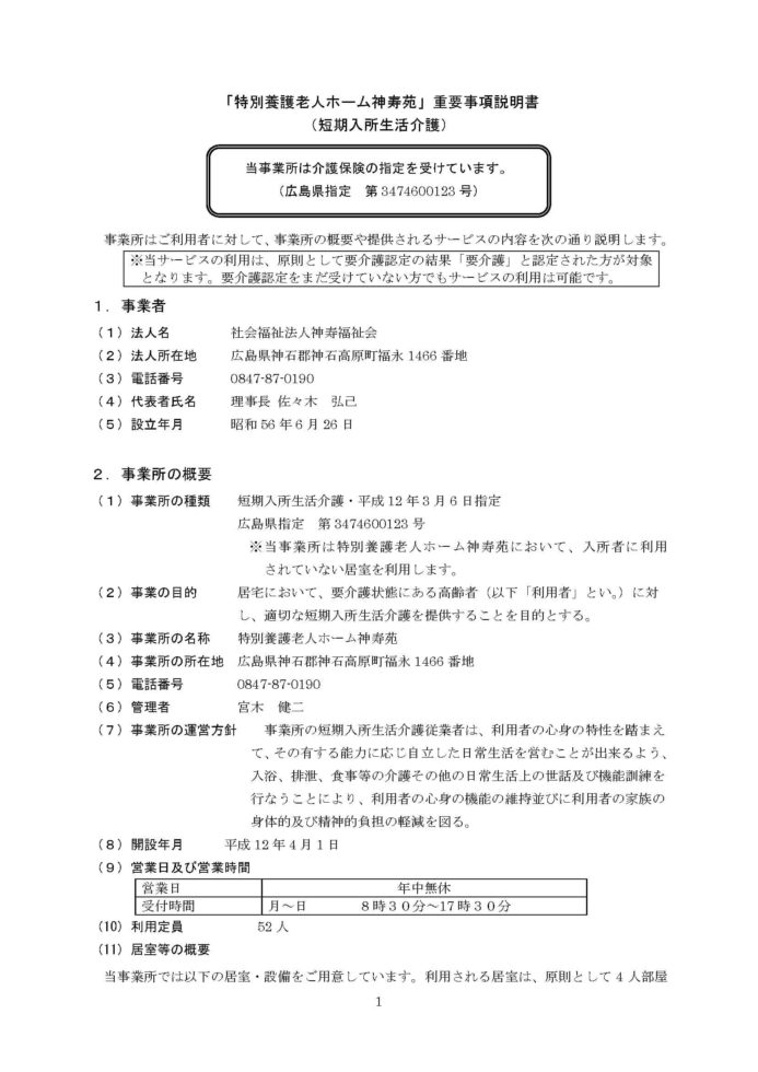 特別養護老人ホーム神寿苑(短期入所生活介護)重要事項説明書
