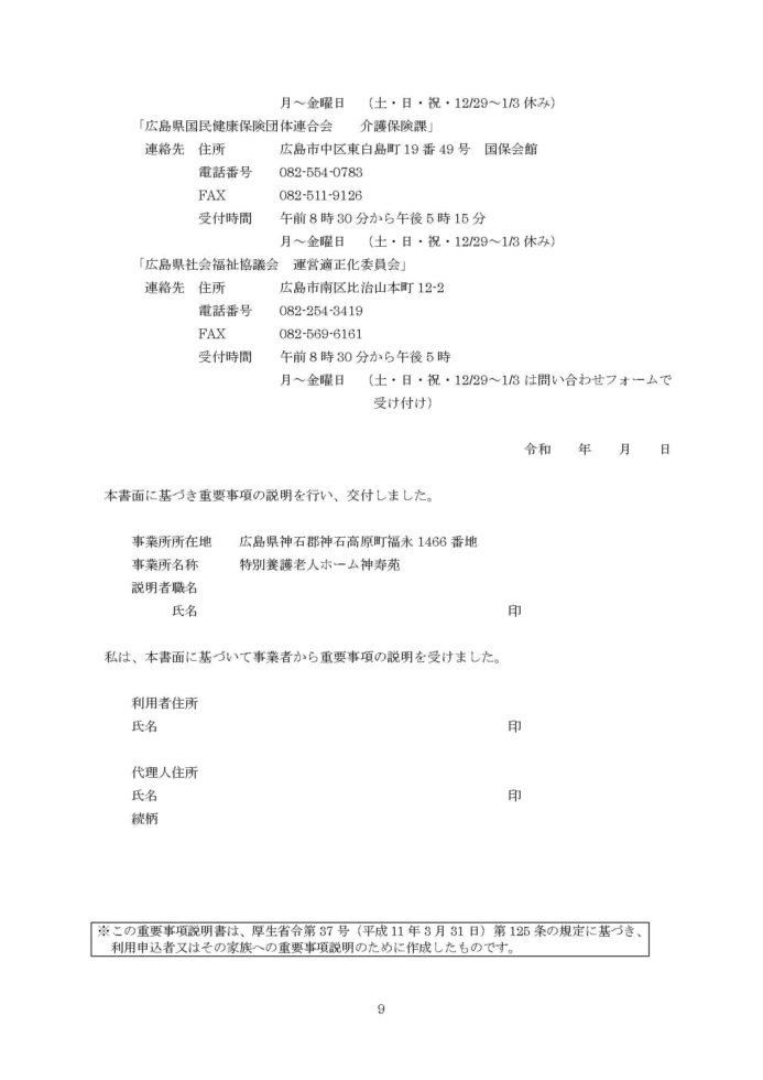 特別養護老人ホ一ム神寿苑 重要事項說明書