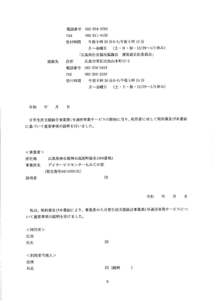 デイサービスセンターもみじの里 日常生活支援総合事業 重要事項説明書